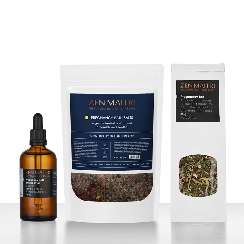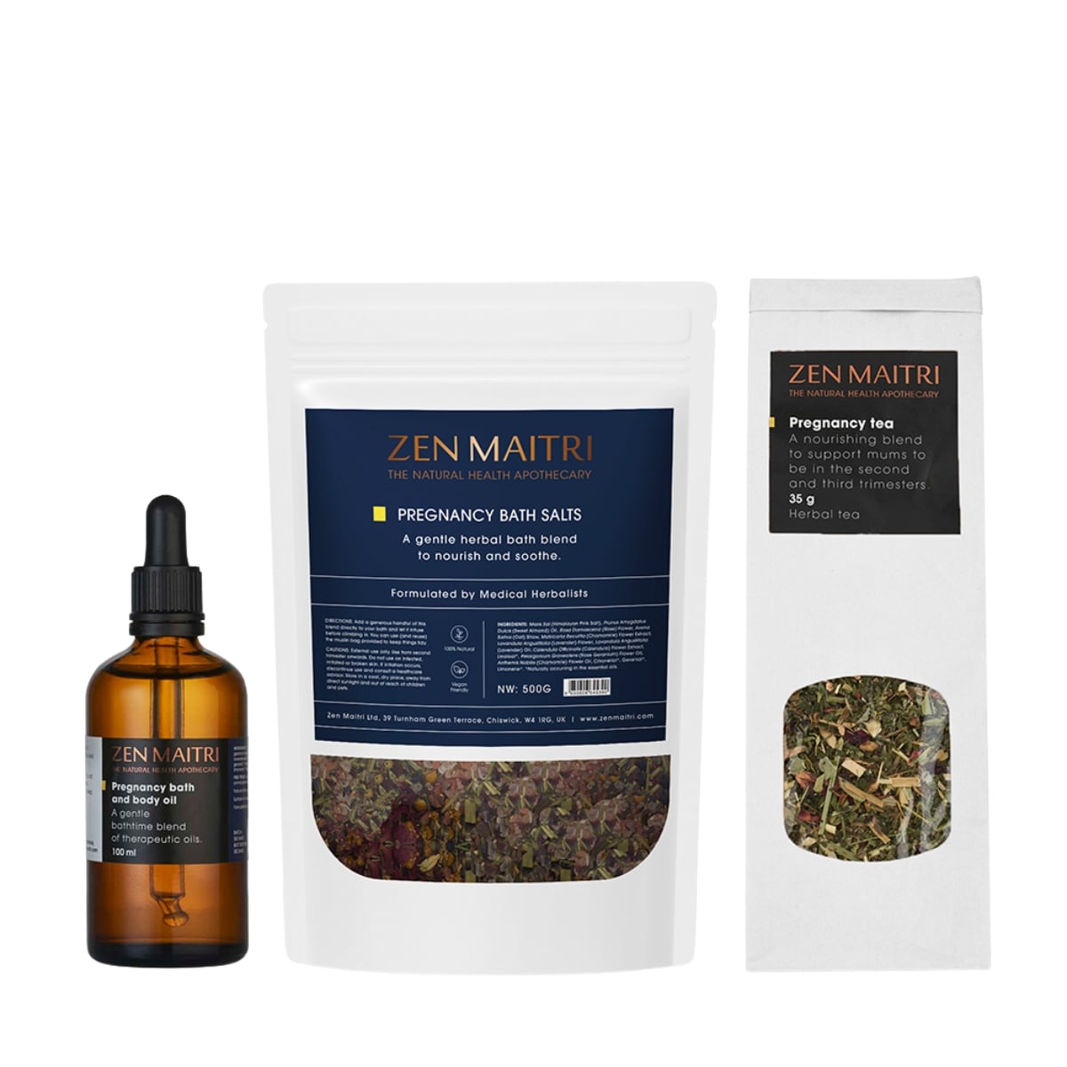 Contents: Pregnancy Bath Salts (500g), Pregnancy Tea (35g), Pregnancy Bath & Body Oil (100ml)