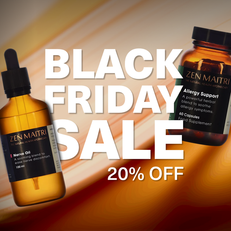 This November, we’re celebrating Black Friday by bringing you our biggest savings of the year. Enjoy 20% off everything and reconnect with nature’s most powerful wellness allies — from soothing blends and nourishing oils to energising herbs and premium formulas. Offer includes the Zen Maitri Natural Health Consultation. Apply code ZENFRIDAY at checkout. Ends 30 November at 23:59.